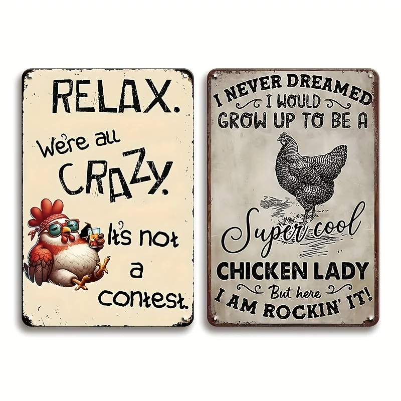 2pcs - Funny Chicken Lady - Vintage Metal Signs(8*12Inch/12*16Inch) - Chicken