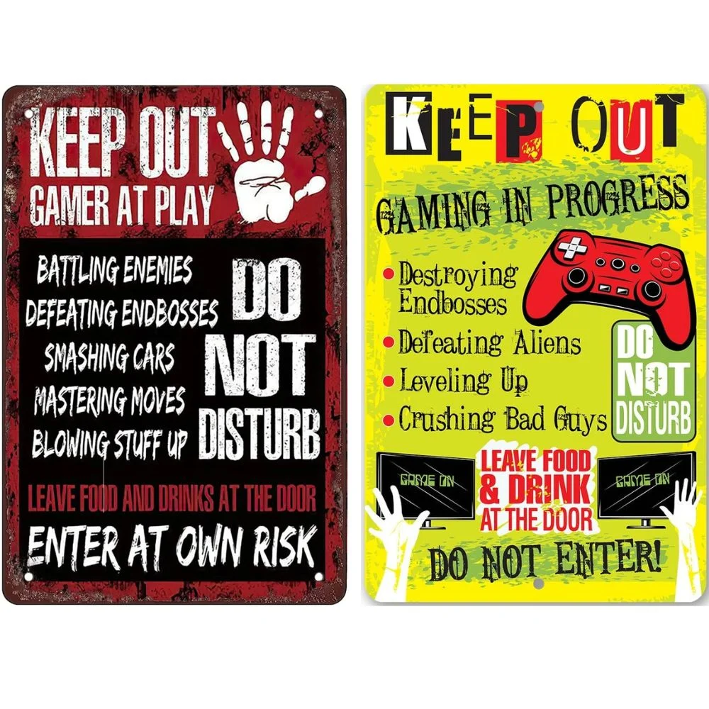 2pcs - Keep Out Gaming Progress Warning Vintage Metal Signs(12*16Inch)