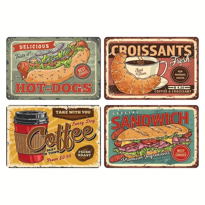 4pcs - Breakfast Coffee - Vintage Metal Signs(8*12Inch/12*16Inch) - Bar