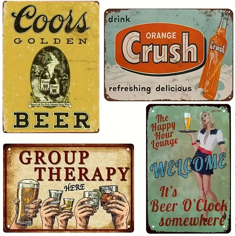 4pcs - Charming - Vintage Metal Signs(8*12Inch/12*16Inch) - Bar