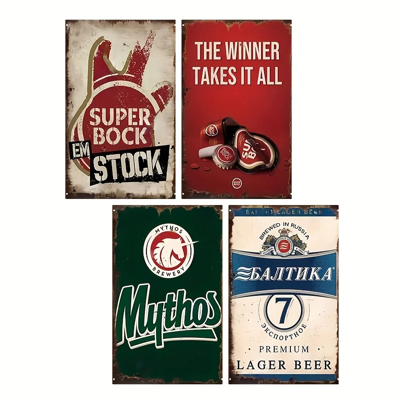 4pcs - Drinks - Vintage Metal Signs(8*12Inch/12*16Inch) - Bar