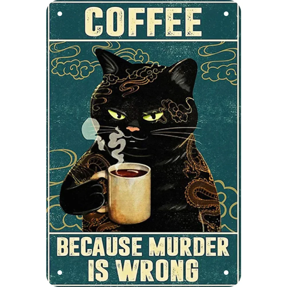 Vintage Black Cat Metal Tin Sign Plate Retro Home Bar Pub Club Plaque Wall Art Decor Crafts Animal Iron Painting Poster Kitchen Coffee Cafe Decoration Accessories