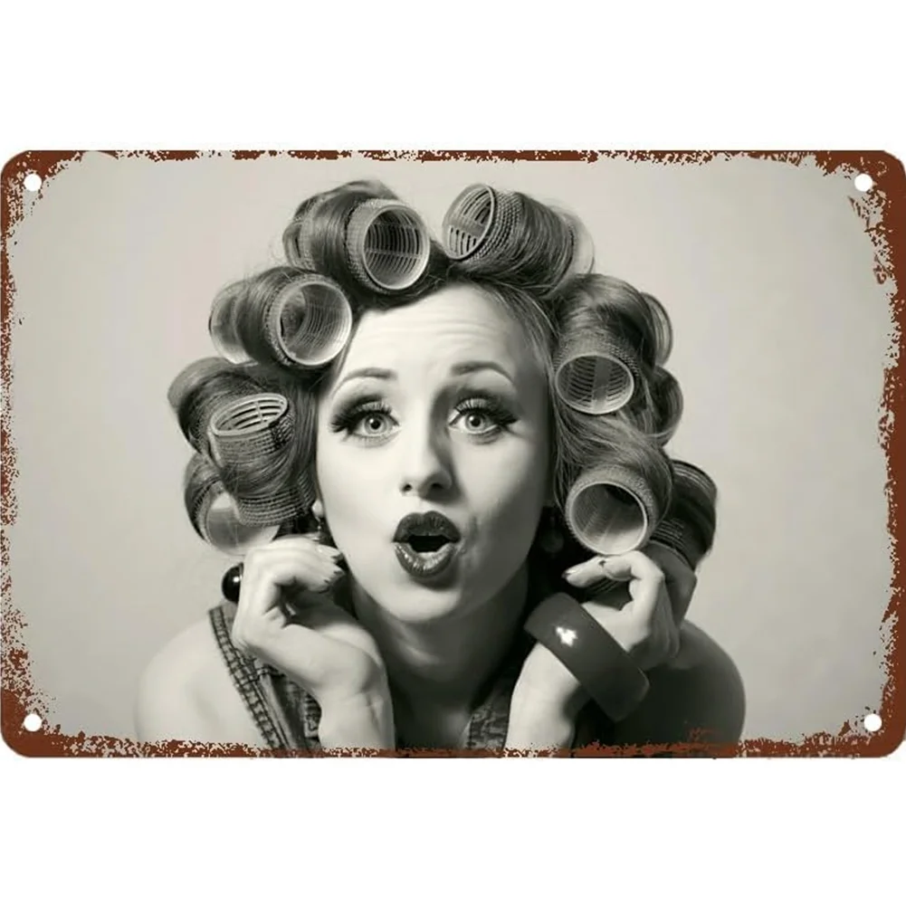 Girl Hairstyles Curly Hair Barbershop Salon Models - Vintage Metal Signs(16*12Inch) - Bar